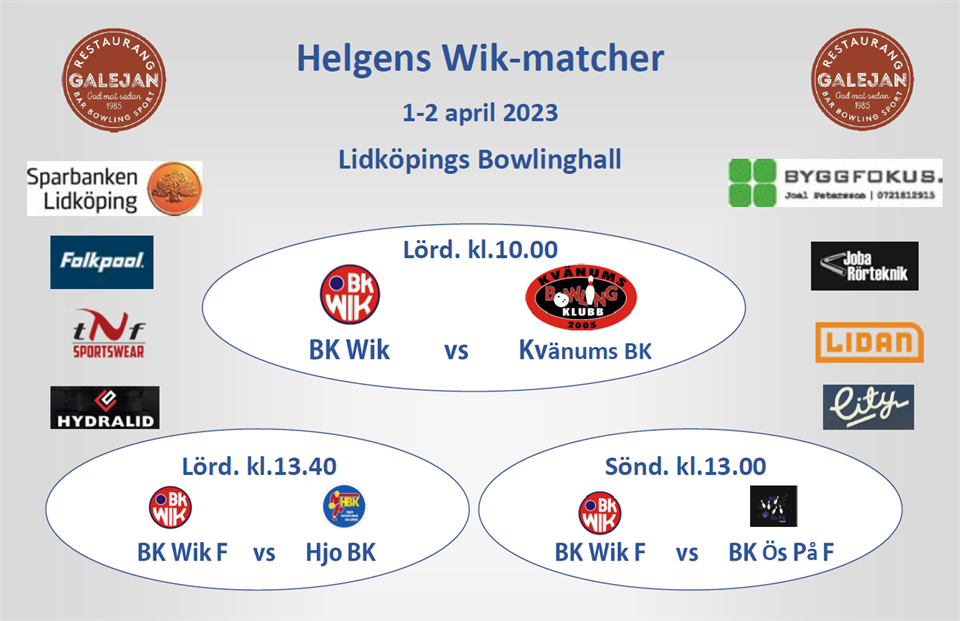Ja, båda lagen fick med sig varsin seger efter helgens bortaturné A-lager först ut mot Håvås i Melleruds 5-banshall där ”förstagänget” fick en fin start med 2-0. Sen tog det tvärstopp och halvvägs var ställningen 6-2 till hemmalaget. In med nytt blod i Wik och dessa fick en lika fin start, 2-0. Således 5-0 i första serien. Hemmalaget hade dock mycket marginal i resterande serier vilket Wikarna jobbade ikapp steg för steg men till slut var backen för brant. 12-8 slutar matchen till Håvås favör. Bäst i Wik Tomas Elofsson med snygga 933. Även Janne, Tommy och Linus över 800 Vidare mot Ed där Wik var steget före hela matchen. Alla serier slutar 4-1 till Wik, även om det var tajt lite varstans. Seger 16-4. Bäste lirare denna match var unge Axel Wallin med 918. Andreas, Janne, Stefan och Joel inkasserade också de en tia Farmen styrde mot Mariestad, och först vankades seriefinal mot BK64 F. En match man ville vinna, och full fart från start var receptet. 3-2 i första till Wik, följdes upp med 3 gånger 4-1. Seger 15-5 med stiliga 6538 i lagresultat. Bäst i laget gamle Lars Liljeqvist avstannande på 909. Guldpeng även till Maths, Joel, Fredrik och Walle Sedan stod Gärdet för motståndet, och dessa fick en drömstart med 1660. Wik i underläge 1-4. 3-2 till Wik i andra. Tredje blir tajt men hemmalaget var lite skarpare i slutrutorna så inför sista är Wik i underläge 5-10. Krafttag men Gärdet får tidigt grepp om ett bord som vi inte lyckas vända, så förlusten skrivs till 9-11. Bäst denna match Maths Blyh med 887. Även Fredrik drygar ut barnbidraget via 877 Två helger kvar innan kval, och A har andraplatsen i egna händer. Även F har greppet om serieseger om man spelar korten rätt #återtåget