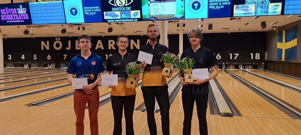 Så var årets Västgöta DM avgjort. Wikare representanter i semifinalen i Vänersborg var Axel Wallin, Linus Jonasson och William Tigerberg. Riktigt fint spel av Axel som via 953/4 tog sig vidare till finalen i Skövde. Linus och William fick inte riktigt till det men kämpade väl. I finalsteg 1 slog Axel 852/4 vilket räckte för att gå vidare till finalsteg 2. Väl där blev det åter kanonspel med 929, och vidare till ”karusellerna” där det gällde att undvika sistaplats. Första rundan snygga 279 av Axel och avancemang. 205 i nästa runda räckte för att ta sig till finalkarusellen. Tajt hela vägen och chansen till pallen fanns till sista rutan. Trots bra slag stod en kägla kvar tyvärr. Men vi lyfter på hatten för en snygg fjärdeplats bland elitspelare och landslagsmän, och 227 i snitt på hela dagen idag imponerar! Grattis Axel!